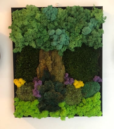Il muschio stabilizzato è un materiale 100% naturale che viene trattato per mantenere nel tempo la propria elasticità, il colore e la morbidezza, senza bisogno di acqua o manutenzione.